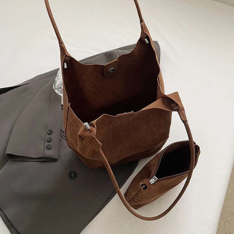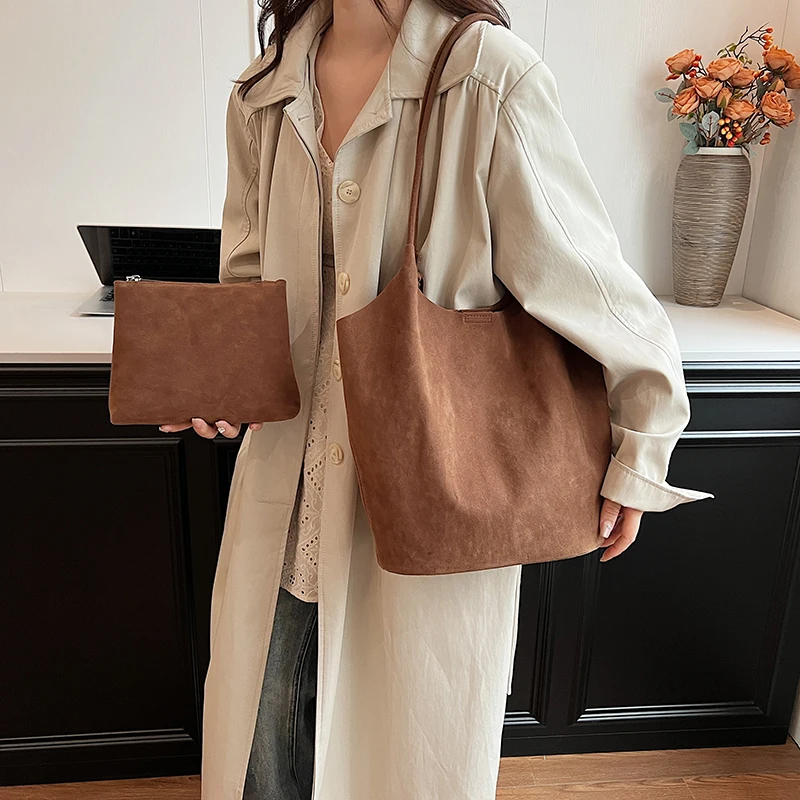 Oui, une pochette assortie, fabriquée dans le même suède végan, est offerte avec chaque sac. Parfaite pour ranger vos petits accessoires ou vos essentiels du quotidien.